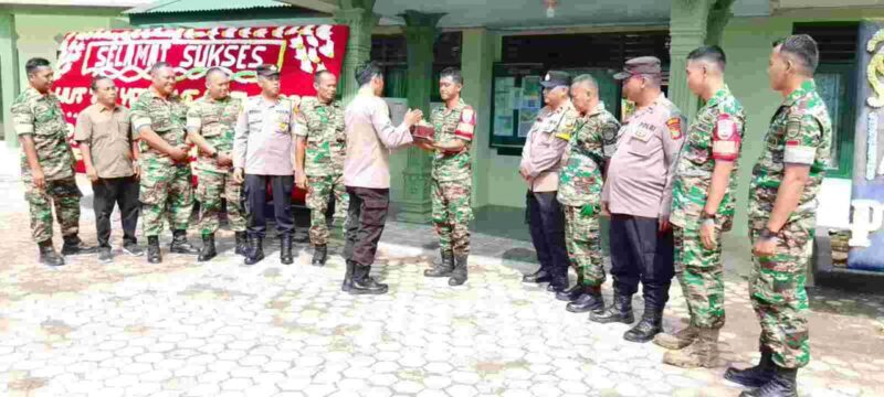 Dalam kunjungannya, AKP Reynold Silalahi beserta personel Polsek Indrapura memberikan kue ucapan selamat HUT TNI kepada personel Koramil 02/AP Indrapura yang diterima oleh Praka Deni Masrial yang merupakan personel TNI termuda di Koramil tersebut.