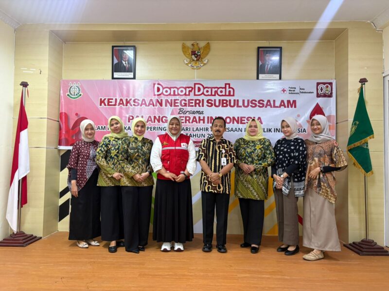 Subulussalam –baranewsaceh.co. Dalam rangka memperingati Hari Lahir Kejaksaan Republik Indonesia, Kejaksaan Negeri (Kejari) Subulussalam bekerja sama dengan Palang Merah Indonesia (PMI) Kota Subulussalam menggelar kegiatan donor darah di Aula Kejari, Jumat (22/8/2025).