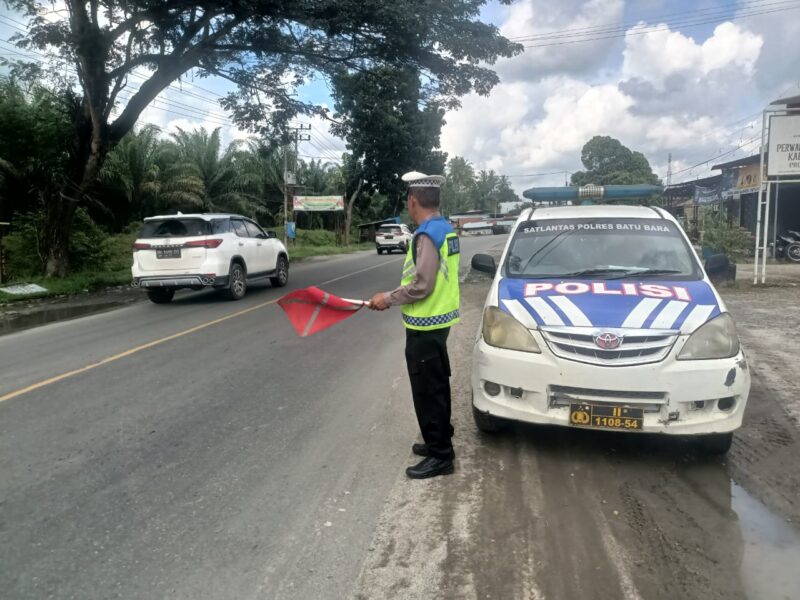 Sat Lantas Polres Batu Bara Tingkatkan Keamanan dan Ketertiban Lalu Lintas dengan Patroli “Kibas Bendera”