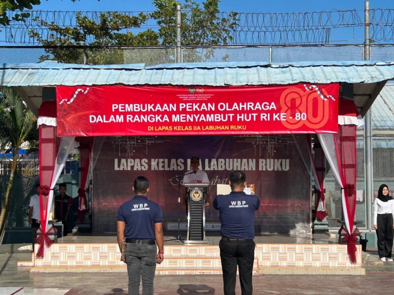 Batu Bara – Dalam rangka memeriahkan Hari Ulang Tahun Republik Indonesia ke-80, Lembaga Pemasyarakatan (Lapas) Kelas IIA Labuhan Ruku menggelar Pekan Olahraga yang melibatkan pegawai dan warga binaan, Selasa (12/8). Kegiatan dibuka secara resmi oleh Kepala Lapas Labuhan Ruku, Soetopo Berutu, di Lapangan utama dengan penuh semangat kebersamaan dan nuansa kemerdekaan.